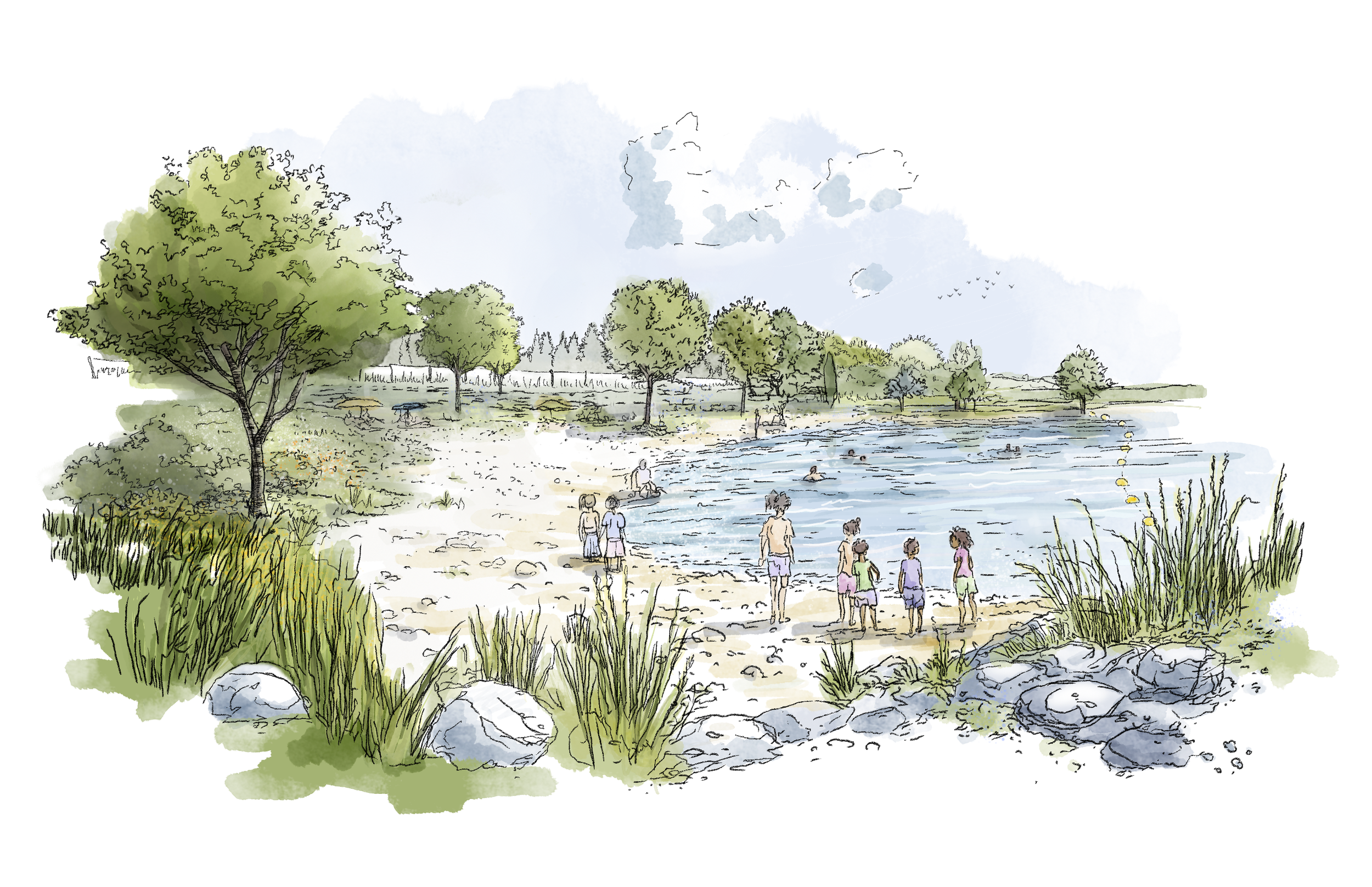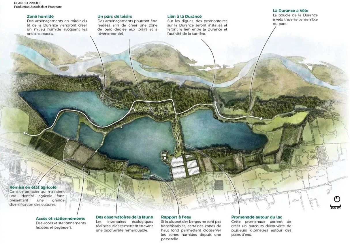 En cohérence avec l’analyse territoriale menée à l’échelle du bassin de la Durance, le projet vise à inscrire le site dans le réseau de plans d’eau et d’espaces de loisirs de la vallée.